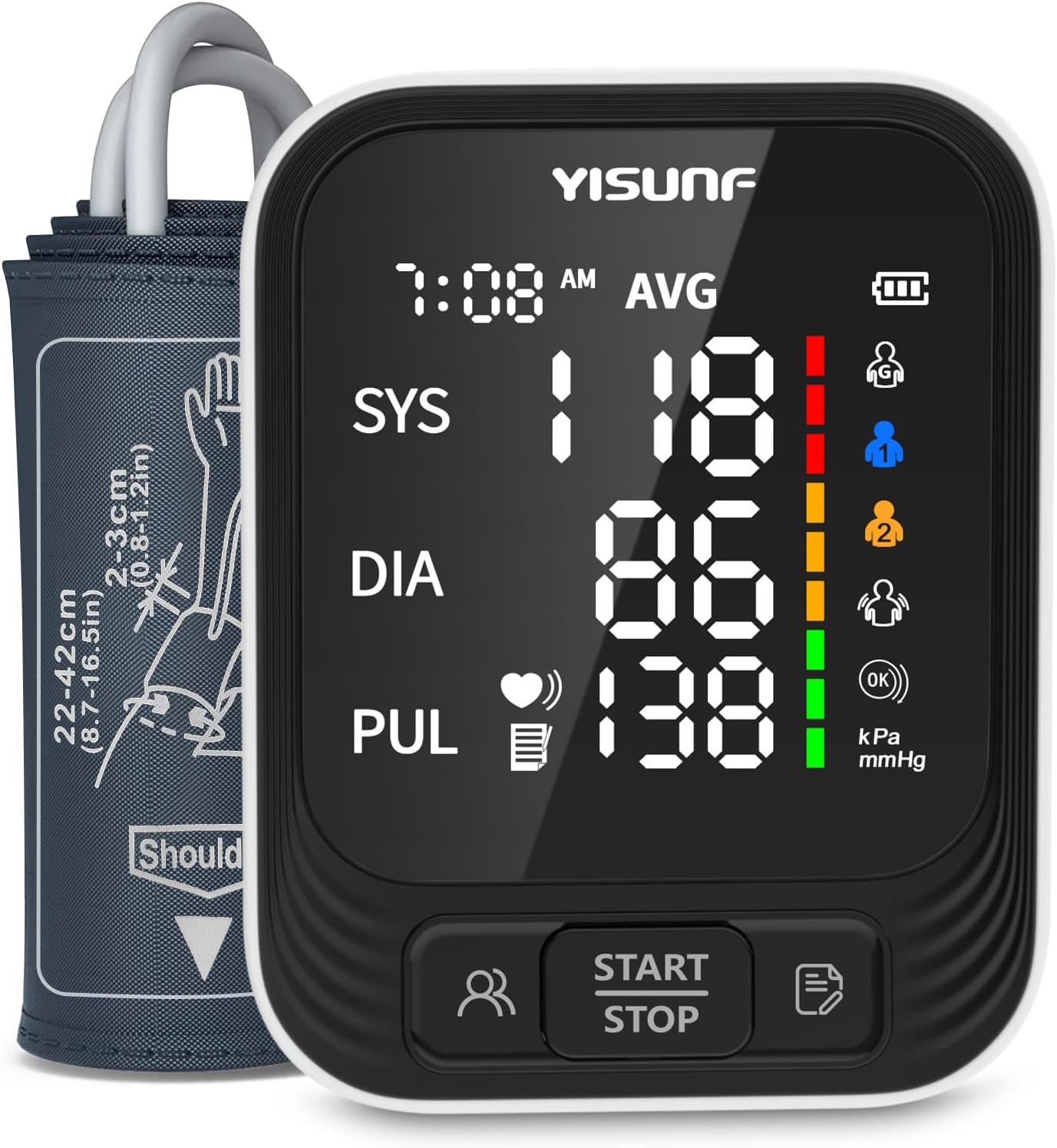 - Gestion Multi-Utilisateurs : Le tensiomètre peut mémoriser jusqu’à 398 lectures réparties entre deux utilisateurs distincts, permettant un suivi pratique des tendances de la pression artérielle sur de longues périodes. Il affiche également la moyenne des dernières lectures pour une meilleure surveillance.